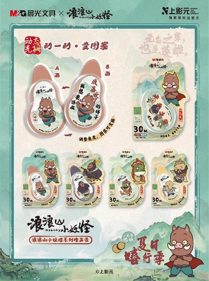 想要拥有不一样的小妖怪,可以考虑晨光x浪浪山小妖怪联名款修正带,这款产品壳身采用动态光栅设计,调整角度图案即可随之变换,有多种小妖怪角色图案可选,趣味十足,且修正带齿轮顺畅,膜带柔韧不易断,实用体验更舒适,京东售价6.65元。设计有小妖怪笔头的联名款转转笔则能为学习再添一份乐趣,精密转轴可支持笔头360°持续旋转30秒,趣味又解压,软胶凹槽护套还能帮孩子矫正握姿,让孩子爱上书写,盲盒款有6种小妖怪形象可抽,每支盲盒京东售价11.5元,感兴趣的用户记得锁定晨光京东自营旗舰店。