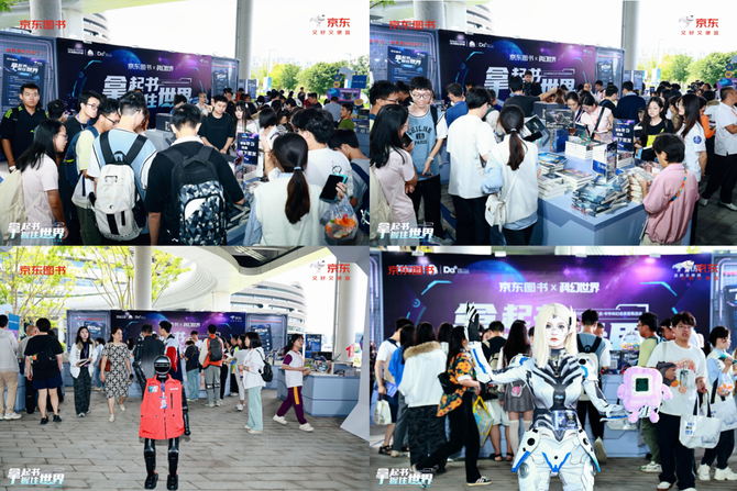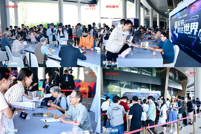 作为大会的特别支持方,京东在大会现场设置了“拿起书,握住世界”主题展区和“AI探索编辑部”互动区,并推出线上活动会场,广大读者和现场观众不仅可以在现场的售书区和AI产品体验区打卡解锁福利,赢取限量好礼,还可以通过京东直播间云逛展,共享这场科幻盛宴。大会开幕当日,京东还联合《科幻世界》杂志社共同举办中外科幻名家签售活动,并推出“科幻领航计划”,加大优质科幻作品的曝光与推广力度,引发了各方的广泛关注。