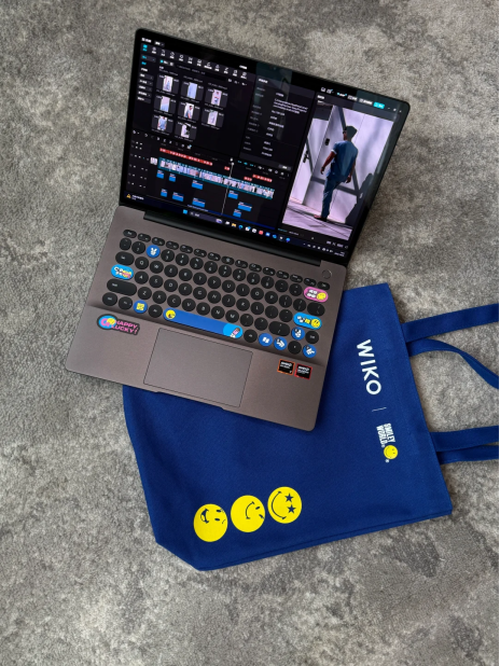 是的,就是那个经典的黄色笑脸。WIKO 鼓励大家“把快乐贴在显眼处”。随机附赠的 SmileyWorld 联名贴纸,让你能把笔记本变成专属的 DIY 画布。当你被甲方折磨得想“发疯”时,低头看一眼键盘旁那个大大的笑脸,瞬间觉得“好像也没多大点事”。