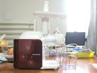 韩国有个牌子,叫惠人原汁机,很多人都说这个牌子的机器好,研究了一下它所谓的石臼式磨制技术,其实就是和咱们农村以前磨豆机、磨香油原理其实是差不多的,碾压将果汁挤出,技术虽然原理土鳖,不过倒是真的是超实用,不过看过价格真不是一般的职业穷人能接受的。万能的淘宝总是会给一些惊喜,找到一个100%%山寨货,不过女王大人觉得不放心(觉得很贵,一个山寨货也敢卖近600元),遂放弃。